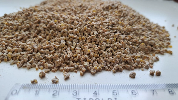 Podawanie składników paszy w postaci kruszonej jest korzystnym rozwiązaniem, ponieważ pozwala ograniczyć udział drobnych, pylących cząstek, które mogą być mniej chętnie pobierane przez ptaki i prowadzić do strat paszy. Szczególnie w przypadku paszy typu starter, przeznaczonej dla najmłodszych kurcząt, najlepsze efekty produkcyjne uzyskuje się, stosując kruszonkę przygotowaną z grubo zmielonych składników. Taka struktura sprzyja prawidłowemu funkcjonowaniu przewodu pokarmowego, ponieważ żołądek mechaniczny ptaka może skuteczniej regulować tempo przesuwania treści pokarmowej, co wpływa na lepsze trawienie i wchłanianie składników odżywczych.